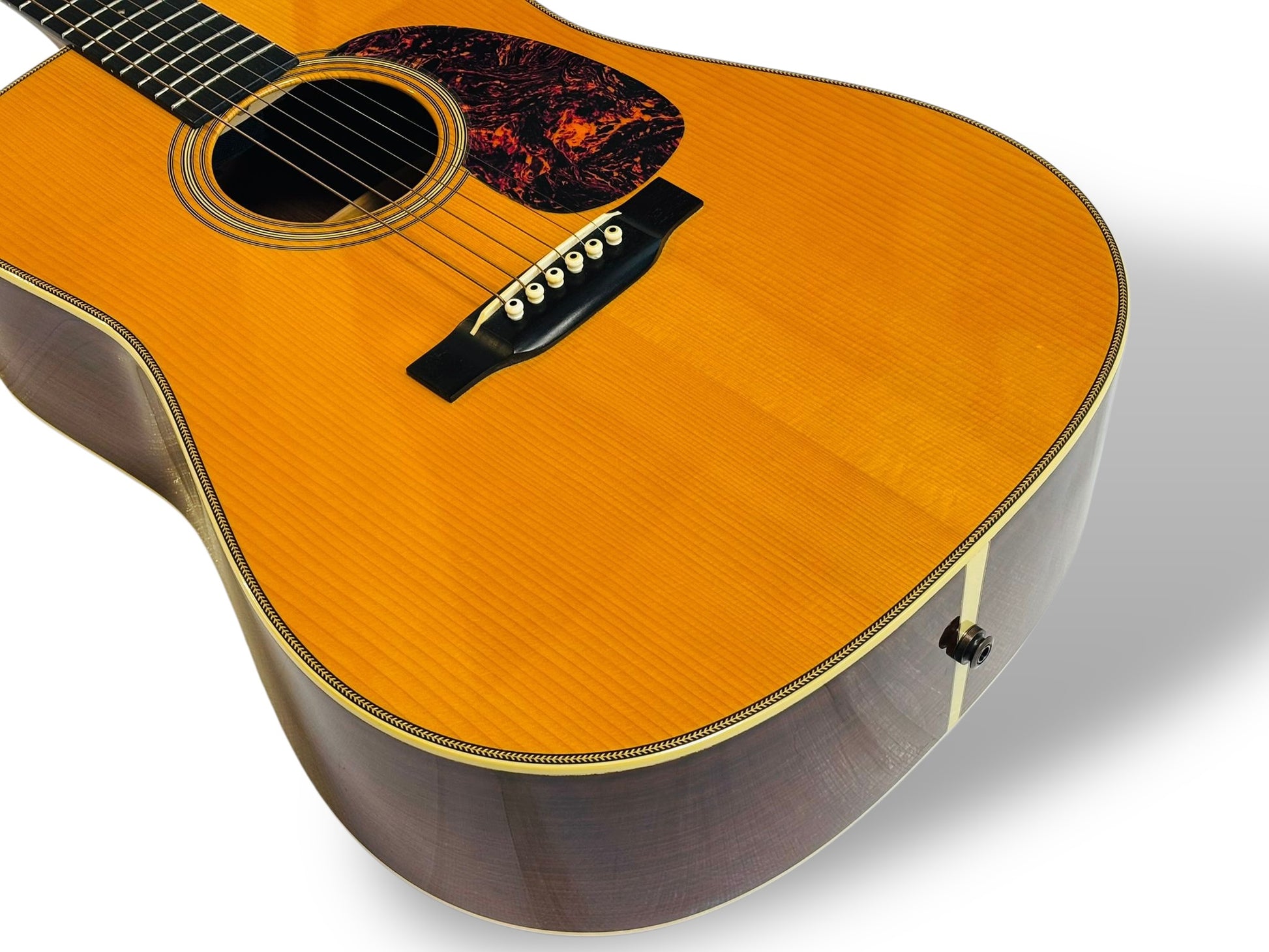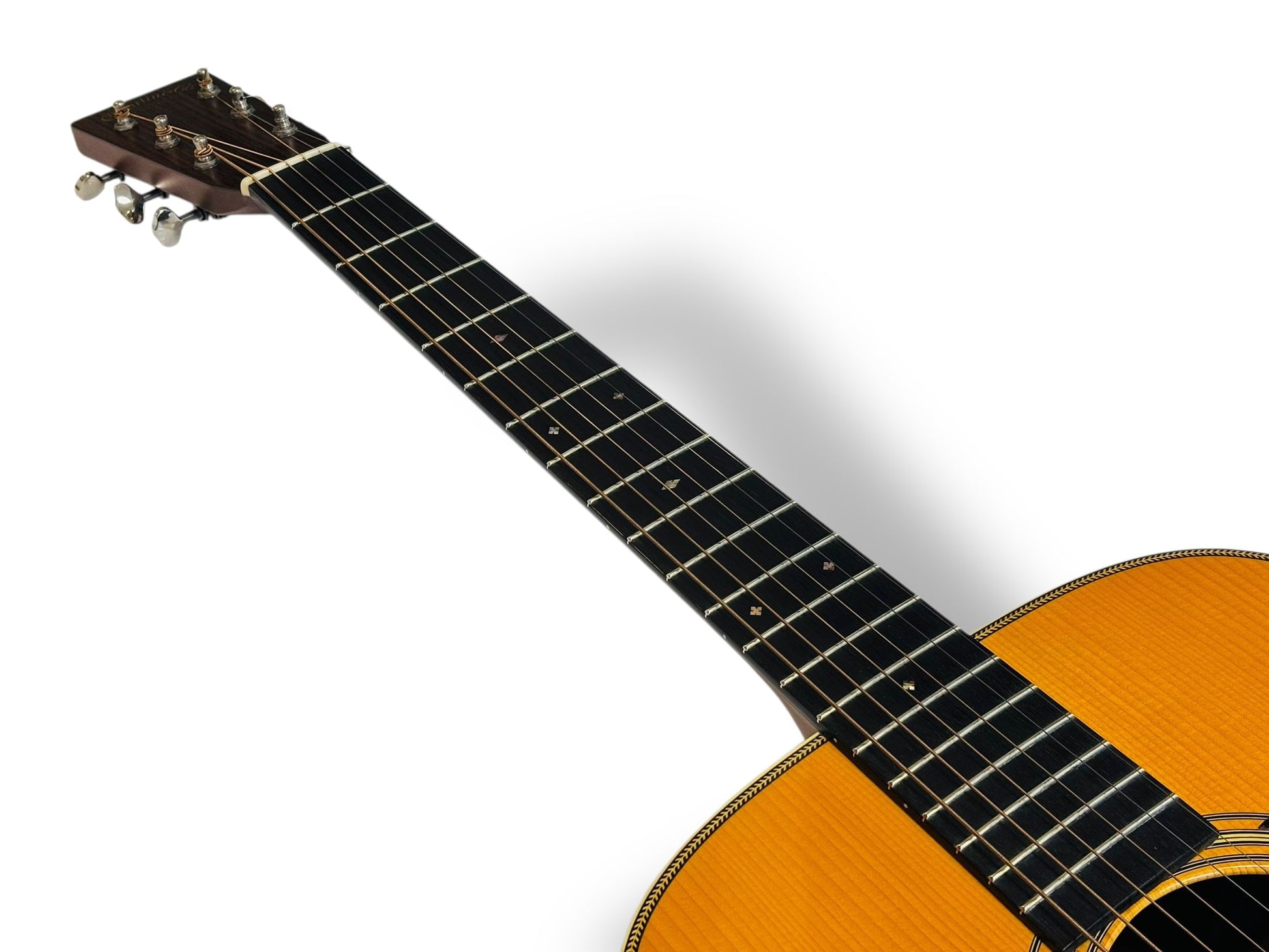 Featuring a solid Adirondack (Red) spruce top and solid East Indian rosewood back and sides, this 2005 D-28 Marquis delivers exceptional headroom, deep piano-like bass, powerful projection, and crisp articulation. The forward-shifted scalloped X-bracing (Golden Era pattern) enhances responsiveness and dynamic range, making it a favorite for bluegrass, flatpicking, and powerful strumming.